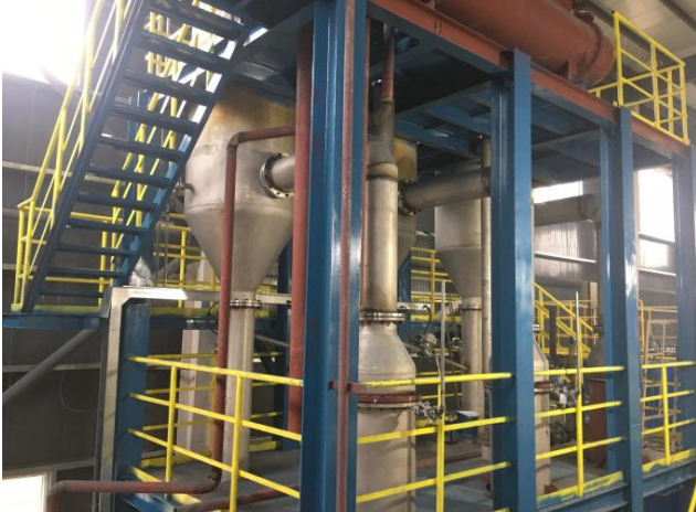 三效蒸發(fā)器主要通過(guò)生蒸汽加熱含鹽廢水,使含鹽廢水蒸發(fā),將鹽、水分離。三效(多效)蒸發(fā)器可利用蒸發(fā)的二次蒸汽,大量的節(jié)約生蒸汽,從而降低運(yùn)行費(fèi)用。